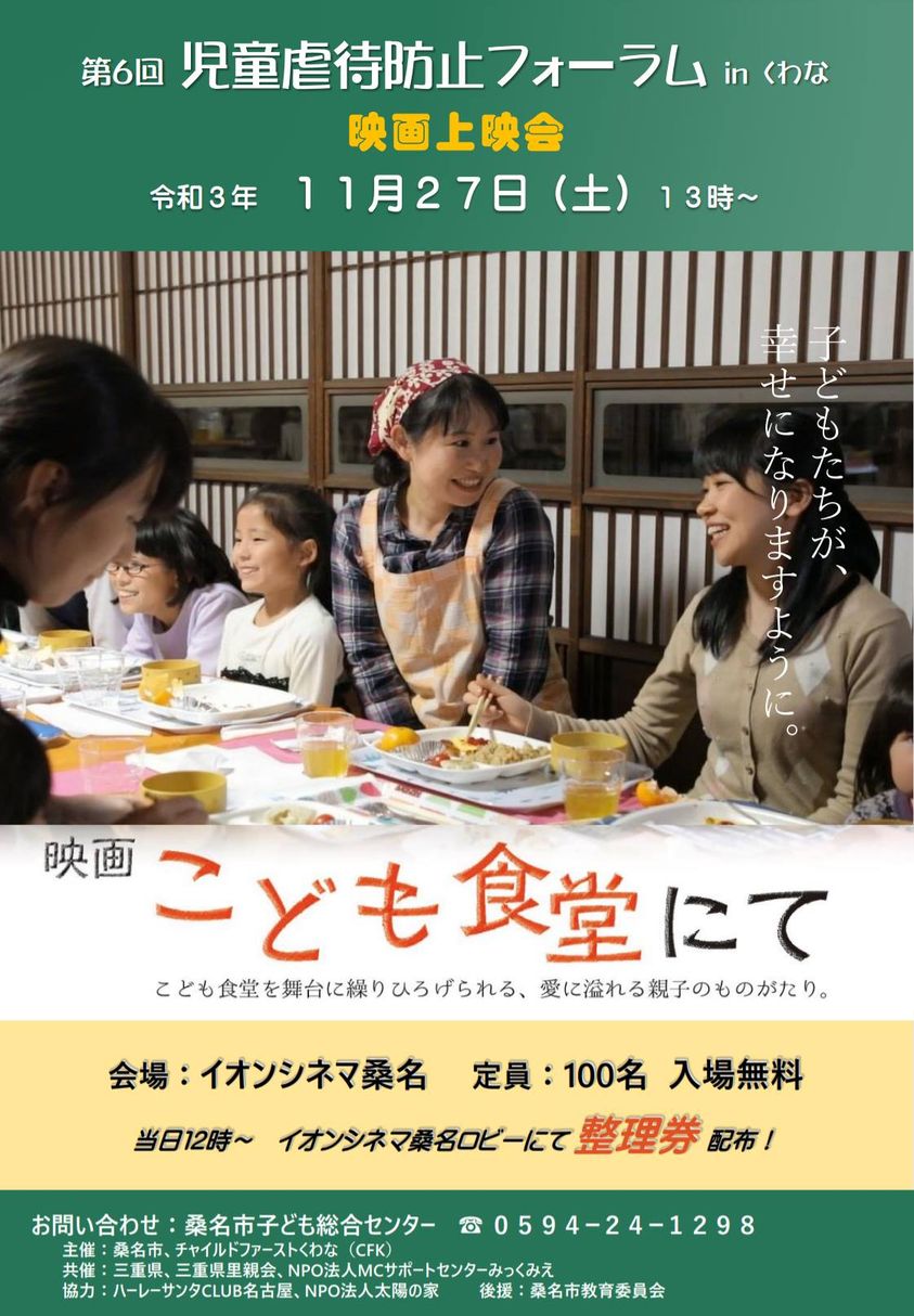 2021年も、まだコロナ禍ということもあり、講演は断念。代わりに、映画の上映会の開催になりました。イオンシネマ桑名で上映した『こども食堂にて』には沢山の観覧者が訪れました。